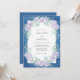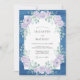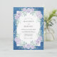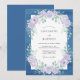This botanical design features a deep indigo blue backdrop that beautifully contrasts with delicate watercolor roses in soft lavender hues. Verdant sage green eucalyptus leaves wrap around the central area, creating a romantic and ethereal atmosphere for a springtime event. The palette balances bold, dark tones with airy, pastel florals to evoke a sense of timeless elegance.