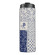 Indigo Blue Beige Floral Patchwork Thermal Tumbler