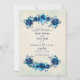Indigo Blue & Beige Watercolor Flowers Wedding Invitation