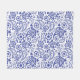 Indigo Blue Boho Chic Paisley Pattern on White Fleece Blanket