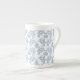 A pretty Bone China Coffee Mug, with a typically Indian-style floral print in Indigo Blue on a White background that you can change if you wish. Part of the Posh and Painterly 'Indigo' collection. This pattern can easily be adjusted to fit any Mug.