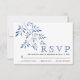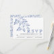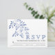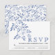 Indigo blue leaves contemporay floral wedding RSVP Card