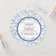 Indigo blue leaves pattern round wedding invitation. The focus of this lovely wedding invite is a floral pattern made of leaves in indigo blue and a white frame with scalloped blue outline that holds your wording.