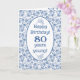 A very pretty 80th Birthday Card, with an Indigo Blue floral pattern on the front cover and a Faux Lace trim on the inside, where you can also personalise the message. This design is part of the Posh and Painterly 'Indigo' collection and can easily be adjusted to fit any card size.