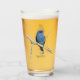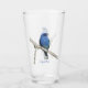 A photograph of a brilliant blue Indigo Bunting adorns this customisable drinking glass!