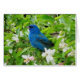 Indigo Bunting bird is perched among Spring Crabapple blossoms. Wildlife, floral image captured in New Hampshire.