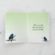 This Mother's Day card features the spectacular male Indigo Bunting perched on a branch amidst lush green leaves. This tiny bird is not often seen. He is shy and tends to avoid humans. His habitat is farmland, brush areas, and open woodlands. He has incredibly brilliant iridescent blue feathers and a very sweet song. The female is cute but a dull brown colour. Inside are two small buntings on a pale green gradient. The text can be customised to suit your needs.