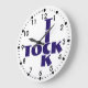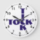 This lightweight acrylic wall clock face is modernly designed with the indigo words "Tick Tock" in a crossword puzzle style design. The design includes an outer ring of black elements and an inner ring of black numbers. Be sure to check out the smaller 8" diameter.