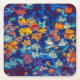 Indigo fall leaves swirl pattern square paper coaster