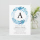 Our Indigo Leaves wedding invitation displays your monogram surrounded by a wreath of watercolor foliage in vibrant shades of indigo and teal blue with your wedding details below. The stylish botanical wedding invitations are perfect for spring and summer weddings.