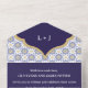 The deep indigo color palette adds drama, depth, and sophistication, making this invitation especially suited for evening weddings, upscale venues, and candlelit receptions. Ornate tile artwork is thoughtfully balanced with clean typography to ensure excellent readability while still delivering a strong artistic statement.