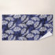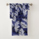 White palm leaves on an indigo blue background, layered with more blue palm fronds. Perfect for Asian, cottage or beach themed rooms.
