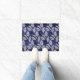 White palm leaves on an indigo blue background, layered with more blue palm fronds. Perfect for Asian, cottage or beach themed rooms.