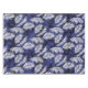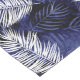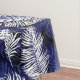 White palm leaves on an indigo blue background, layered with more blue palm fronds.