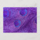 indigo purple glitter peacock feathers postcard