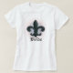 Celebrate AS you and your attendants prepare for your special day! This bride's t'shirt is the perfect attire as you shop, sample, and get ready for your event! It features a classic iron fleur de lis against a fading tapestry background in soft indigo and rose, shown here on a white shirt! Be sure to check out all the coordinate items - from "save the date" announcements, to invitations, ...iPhone cases, postage and even a coordinate tie for him!