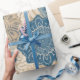 Indigo Tan Boho Floral blends relaxed bohemian style with coastal charm. Radiant suns and intricate florals come together in a soothing palette of denim blues, sandy beige, soft ivory, and deep indigo.