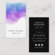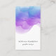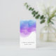 Chic watercolor business cards in a unique vertical format feature your name or company name layered on a blooming inkblot illustration in eyecatching shades of indigo blue and violet purple. Add your full contact information to the back in white on black. Includes three social media icons and a template field for your username or handle.
