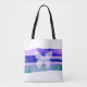 This bag features watercolor strokes in shades of purple, indigo and teal with a butterfly silhouette. This design is also available on a range of other products. Please visit the collection page in our store to see the full range of products that you can personalise.