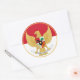 The National emblem of Indonesia is called Garuda Pancasila. The main part of Indonesian national emblem is the Garuda with a heraldic shield on its chest and a scroll gripped by its legs. The shield's five emblems represent Pancasila, the five principles of Indonesia's national ideology. The Garuda claws gripping a white ribbon scroll inscribed with the national motto Bhinneka Tunggal Ika written in black text, which can be loosely translated as "Unity in Diversity". Garuda Pancasila was designed by Sultan Hamid II from Pontianak, supervised by Sukarno, and was adopted as the national emblem on 11 February 1950.