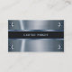 This professional business card showcases a sleek blue metal design with riveted accents, adding a bold, industrial aesthetic. The brushed steel texture and modern layout make it ideal for engineers, construction professionals, contractors, and handymen. The dark centre band highlights your name and title, ensuring a clean and sophisticated presentation. Perfect for professionals seeking a strong and reliable impression.