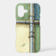 A creative industrial-style case featuring intersecting metallic pipes with gold textures and soft watercolor shades of green, blue, and cream — personalised with a subtle monogram for a bold yet artistic touch.