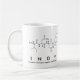 Indy spelled out in amino acids as I N D Y (Isoleucine Asparagine Aspartic acid Tyrosine) on a mug for the scientist in you.