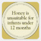Honey is unsuitable for infants under 12 months, just another way of saying do not feed honey to infants under one year old. Honey jar label can be customised for any purpose to use on the top cap or side of glass mason jars, plastic squeeze bottles and other honey containers. Find other small honey jar stickers and labels in our store for honey granulation and nutrition facts. © dotpattern