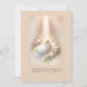 Celebrate a sacred moment with this stunning baptism invitation featuring a serene infant swaddled in a soft blanket, nestled on a white pillow surrounded by delicate spring flowers. A gentle ray of light graces the baby's peaceful face, creating a heartwarming and divine design. Fully customisable text and fonts allow you to add a personal touch to this memorable keepsake.