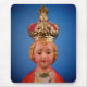 Every year thousands upon thousands flock to a cathedral in the Czech Republic to pay homage to a 16th centre statue of the baby Jesus in hopes of tapping into the miraculous powers the wooden likeness is said to bestow upon the needs of the pious and devotional. Do we have good news for you! No longer must those seeking intervention from above travel across the Atlantic! Save on the expensive airfare and the crush of adoring faithful, and trade UP to an Infant of Prague mousepad! Yes, it's — literally — miracles at your fingertips as you move your mouse across your desk! Now, we don't exactly guarantee that this colourful mousepad will work for big ticket items like World Peace or Elimination of Disease, but give it a try for the smaller things: "I can't find my cellphone," "find me a good parking place" are probably more within its circle of prayerful power. The Infant of Prague is one of 55 portraits created for John Purlia's recent solo exhibition, "Tales from the Vinyl Dimension".