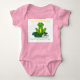 Adorable and comfy frog themed, pink bodysuit for baby with cute yellow-green lily pad logo. Has snap closure for easy wear.