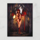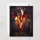 A seductive demoness stands in a shadowy forest, her fiery wings spread wide as she wields a glowing flame and a crimson trident. Clad in dark red, she exudes power, danger, and dark enchantment.