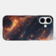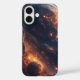 Ignite your device with this fiercely dramatic space art! This phone case captures an epic, intense view of the cosmos, featuring swirling, fire-toned nebulae that illuminate the darkness. The vivid orange and gold glows dramatically contrast with the deep navy background, suggesting cosmic dust clouds and distant stars like burning city lights. With a mysterious, dark planet foregrounded, this design embodies the sublime, destructive, and beautiful power of the universe.