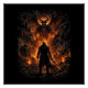 A lone warrior faces a towering demon amid a burning wasteland, surrounded by death, dragons, and the shadow of the underworld.