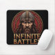 A bold and dynamic design featuring the text "Infinite Battles" in a traditional Viking colour palette of red and gold. The words are arranged in a powerful, angular style, reminiscent of ancient runes. The background is a textured, weathered surface, adding a sense of authenticity and historical significance.