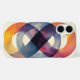 Two infinite loops intersect in bold hues of blue, pink, and yellow, creating a hypnotic visual with striking geometric precision.