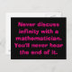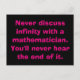 Never discuss infinity with a mathematician. You'll never hear the end of it.