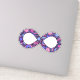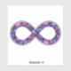 Show your dual pride! The infinity symbol represents all forms of neurodiversity, including autism and ADHD. This cheerful infinity symbol is filled with hearts, stars, rainbows, smiley faces, and polka dots, coloured in the gender-neutral Omni Omnisexual Pride flag's colours — shades of pink, purple, blue, and periwinkle. The glittery texture gives it that extra unique flare — just like you!
