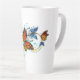 Symbol infinity made of gold, decorated with realistic orange and blue on a white background. Butterfly morpho and Monarch. Design with butterflies.