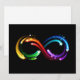 Symbol of infinity is artistically painted with fast moving, bright, luminous, rainbow colored comets with long flexible tails on black background. Rainbow infinity.
