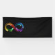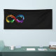 Symbol of infinity is artistically painted with fast moving, bright, luminous, rainbow colored comets with long flexible tails on black background. Rainbow infinity.