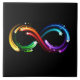 Symbol of infinity is artistically painted with fast moving, bright, luminous, rainbow colored comets with long flexible tails on black background. Rainbow infinity.
