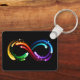 Symbol of infinity is artistically painted with fast moving, bright, luminous, rainbow colored comets with long flexible tails on black background. Rainbow infinity.