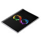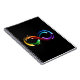 Symbol of infinity is artistically painted with fast moving, bright, luminous, rainbow coloured comets with long flexible tails on black background. Rainbow infinity.