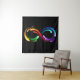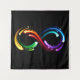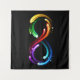 Symbol of infinity is artistically painted with fast moving, bright, luminous, rainbow colored comets with long flexible tails on black background. Rainbow infinity.