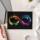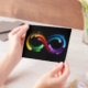 Symbol of infinity is artistically painted with fast moving, bright, luminous, rainbow colored comets with long flexible tails on black background. Rainbow infinity.