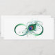 The symbol of infinity with a bright, green, artistic peacock feather on a white background. Tattoo style.