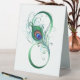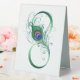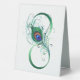 The symbol of infinity with a bright, green, artistic peacock feather on a white background. Tattoo style.