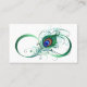 The symbol of infinity with a bright, green, artistic peacock feather on a white background. Tattoo style.