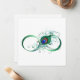 The symbol of infinity with a bright, green, artistic peacock feather on a white background. Tattoo style.